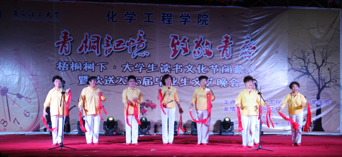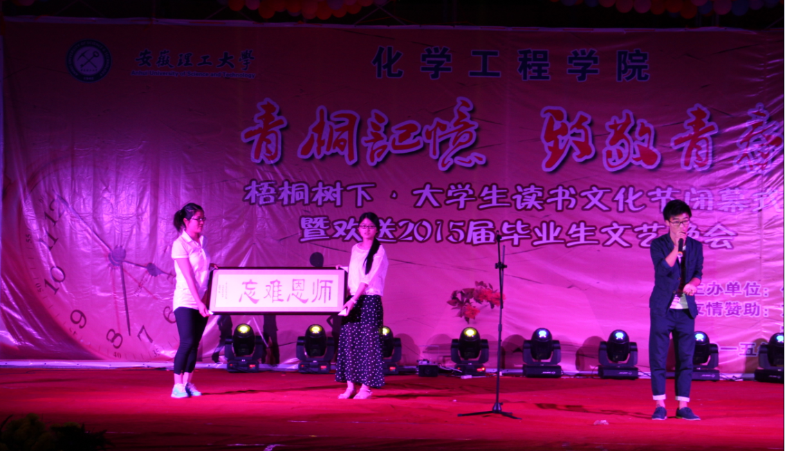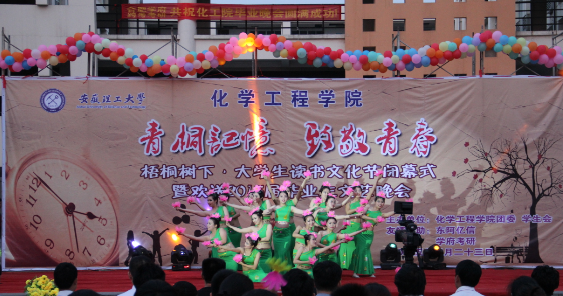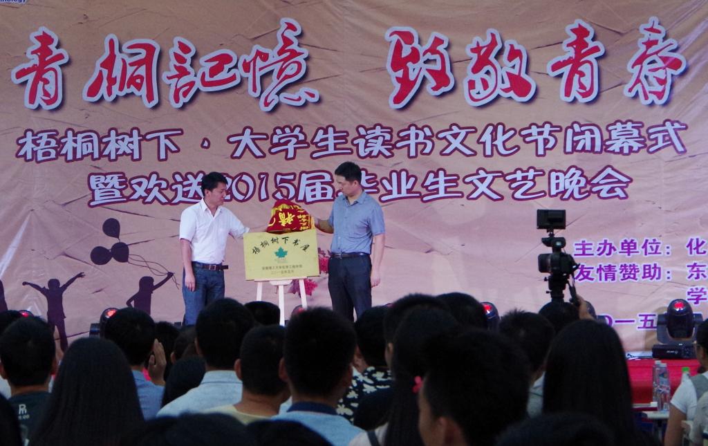 5月23日晚,化学工程学院在北区实验楼前广场隆重举行“梧桐树下•大学生读书文化节”闭幕式暨欢送2015届毕业生文艺晚会,为“梧桐树下书屋”揭牌并向读书文化节活动获奖者颁奖,以深情热烈的文艺表演欢送2015届毕业生。学院党委副书记徐泽绵致辞,表达了对毕业生的殷切希望和衷心祝福。