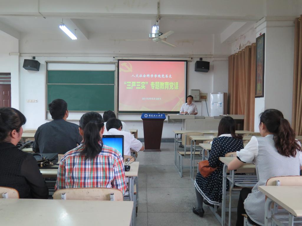 5月28日上午,人文学院“三严三实”专题教育党课在学院楼401教室开讲,学院党总支书记秦朗为教职工党员授课,学院领导杨力、吴云平聆听了党课。