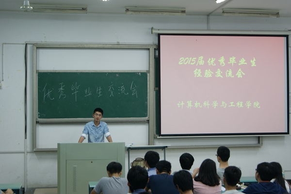为加强各年级学生与优秀毕业生之间的交流与沟通,帮助低年级学生端正学习态度,制定人生规划,5月25日至27日,计算机科学与工程学院组织2015届四个专业16名优秀毕业生,在北校区为学院2013、2014级全体学生举行巡回报告会。