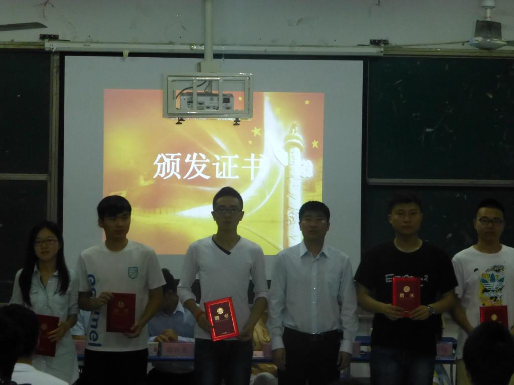 张旸为上一届学生会主席团成员和部长颁发证书。