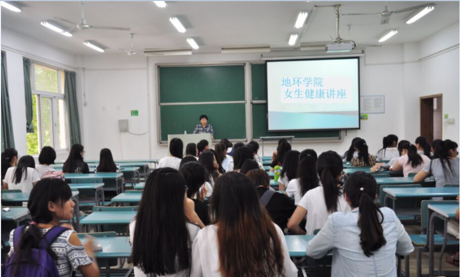 5月30日,地球与环境学院邀请校医院朱晋菊医生在北实204教室举办关爱女大学生健康讲座。学院辅导员赵海霞老师,2013级、2014级全体女生聆听了讲座。