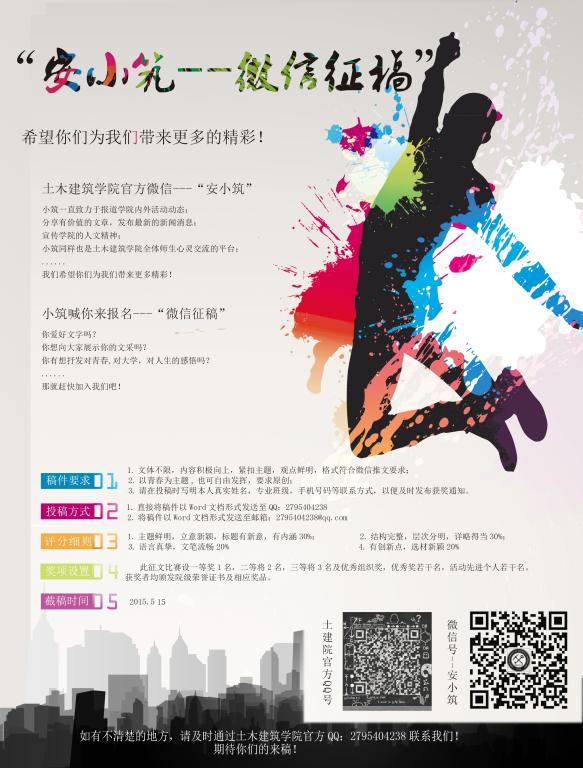 本次“安小筑”微信征文活动的成功举办,进一步扩大了“安小筑”在同学间的影响力,将进一步促进学院新媒体工作的发展。同时丰富了学生的课余文化生活,展现了当代大学生的青春魅力与风采。