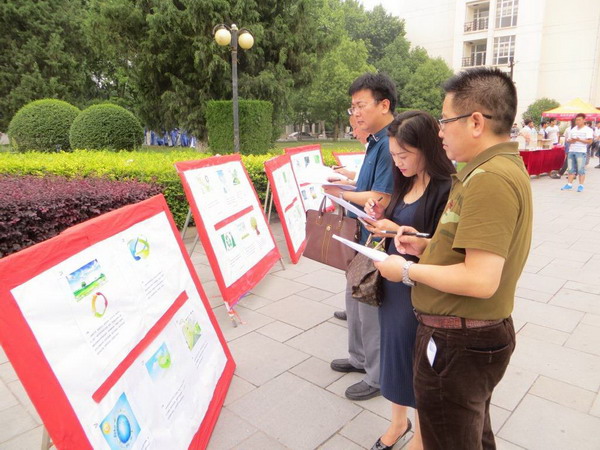 资源循环创意大赛分为两个部分。第一部分是平面设计展示与评比,包括资源循环创意海报、手工艺品等。其中创意海报27份,手工艺品13件,作品充分展示了资源循环、废弃物可加工利用的理念。这些精美的作品凭借独特的创意理念获得了嘉宾和同学们的好评。第二部分是T台秀表演环节,与一般节目不同的是,演员们的服装都是用一些废弃的报纸、蚊帐等物品制作而成,充分体现了“资源有限,循环无限”的大赛主题。连伟、杨慧等人表演的环保相声《三句半》,通过幽默诙谐的方式表达了资源循环的理念,赢得现场掌声不断。最后经过评委打分,徐进、刘俊汝、孙星星等18位同学分别获得平面设计类一、二、三等奖;连伟等人表演的《三句半》获得了创意大赛T台秀一等奖。