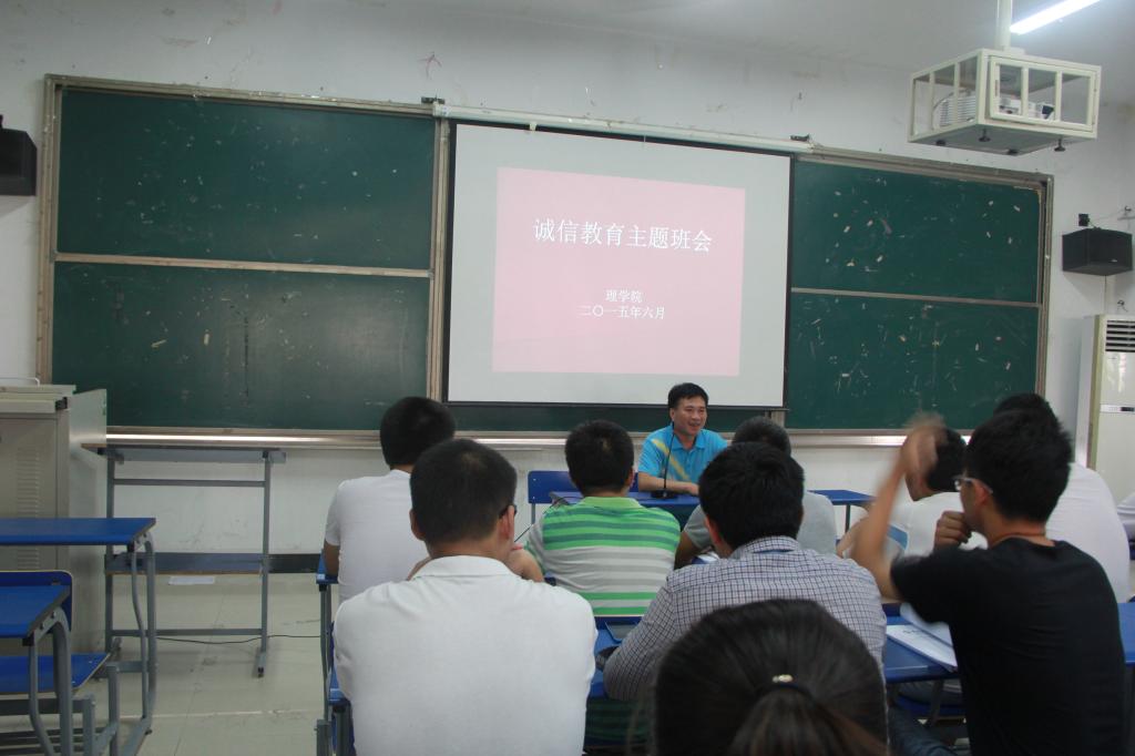 弘扬诚信,召开主题班会。5月27日至6月2日,理学院各年级召开诚信教育主题班会,辅导员结合诚信典型人物及事件,列举了当下学生中存在的不诚信现象和危害,呼吁学生从现在开始,从细节着手,通过实际行动认识诚信、感悟诚信、坚持诚信,不断养成诚实守信的良好习惯和道德品质。
