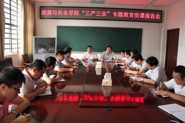 6月8日下午,能源与安全学院在214会议室召开了“三严三实”专题教育党课报告会。学院负责人、系主任、科级干部、各党支部书记和全体辅导员参加报告会。