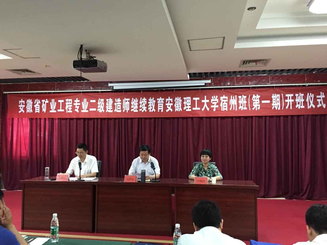 受省建设厅和省建协的委托,6月11日上午,由学校土木建筑学院承担的“安徽省矿业工程专业二级建造师继续教育安徽理工大学宿州班(第一期)”培训在宿州市顺利开班。土木建筑学院院长马芹永、副院长吴秉江,安徽省建筑业协会许晓庆主任等出席了开班仪式。开班仪式由吴秉江主持。