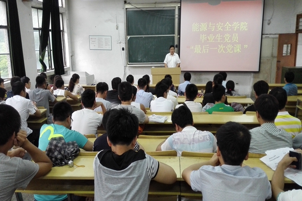 6月15日下午,在合班楼302教室,能源与安全学院组织召开毕业班学生党员大会,学院党委书记欧阳连勤为毕业班党员上了以“梦想在党旗下绽放”为主题的最后一次党课。学院党委副书记金德,毕业班辅导员和一百多名毕业班党员聆听了党课。