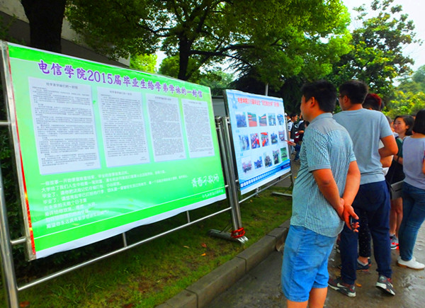 小小的展板展现的是即将离校的学子们对母校的人和物满满的真挚情感。