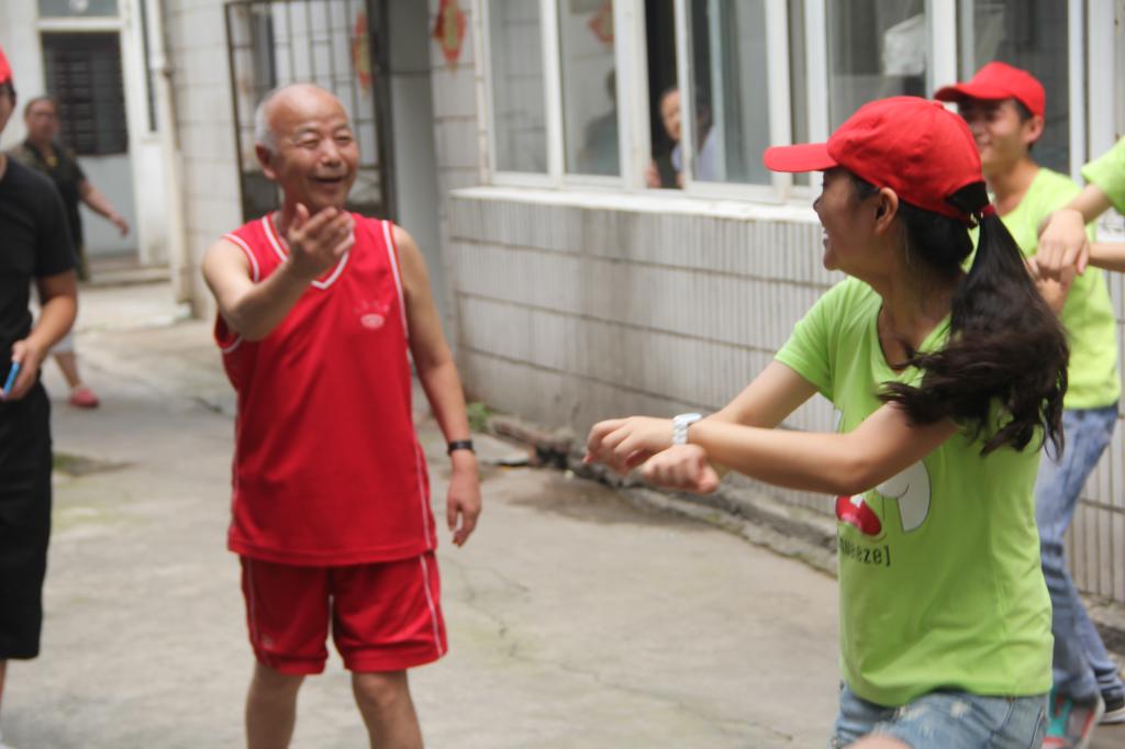 一个小时交流活动后,志愿者为老人带来了精彩节目。大家集体表演了《感恩的心》手势舞,表达对老人们的敬爱之情。红歌大合唱《走进新时代》唱出了志愿者心中对社会发展的心声,也道出了老人心中对国家福利政策的感激之情。表演过程中,老人不时地鼓掌拍手,脸上露出了灿烂的笑容。几个老人也不知不觉也融入到了表演中,唱起了革命老歌,跳起了《江南Style》。舞蹈和歌声里都是老人对往日生活的回忆。