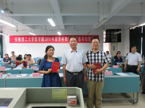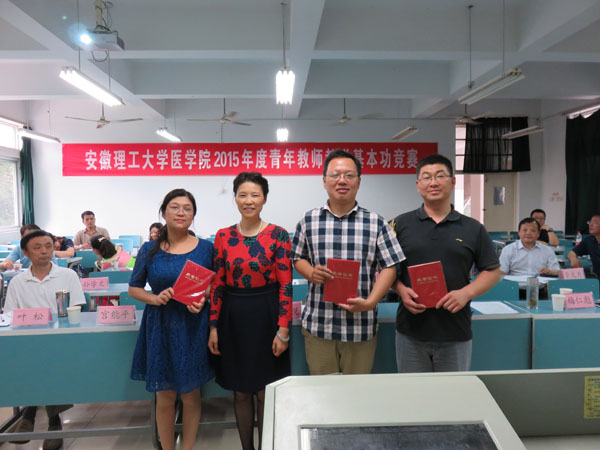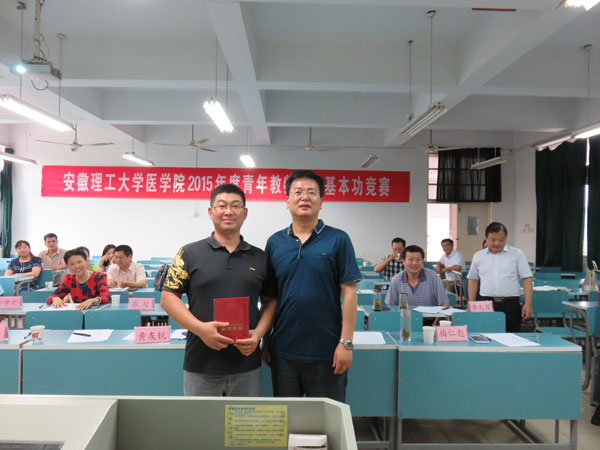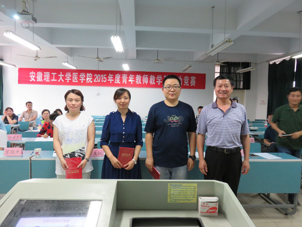本次竞赛成绩由课堂教学、教案设计、多媒体课件和板书质量综合评定,设综合奖和单项奖。经过紧张、激烈的角逐,医学院朱传军以优异表现脱颖而出,拔得头筹;医学院王晓春、第一附属医院朱蕾获得二等奖;医学院宋富春、刘小燕,第一附属医院周淑萍、杨莎莎,附属医院刘艳华、常琳、江涛、邵蔚获三等奖。朱蕾获教案设计竞赛奖、朱传军获多媒体课件竞赛奖、王晓春获板书竞赛奖。