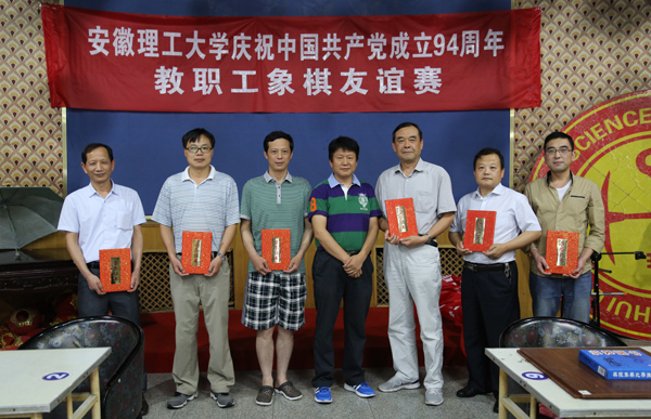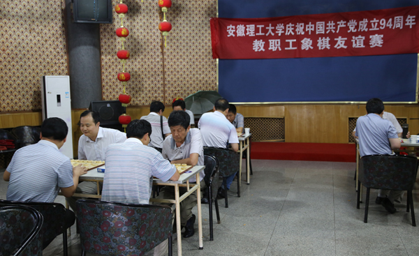 6月27日,由校工会举办的庆祝建党94周年教职工象棋友谊赛在校本部教职工活动中心多功能厅举行,来自各分工会及离退休工作处的7支代表队20余名选手参加了比赛。校工会主席李广田、副主席李颖到现场观看比赛并为获奖代表队及选手颁奖。