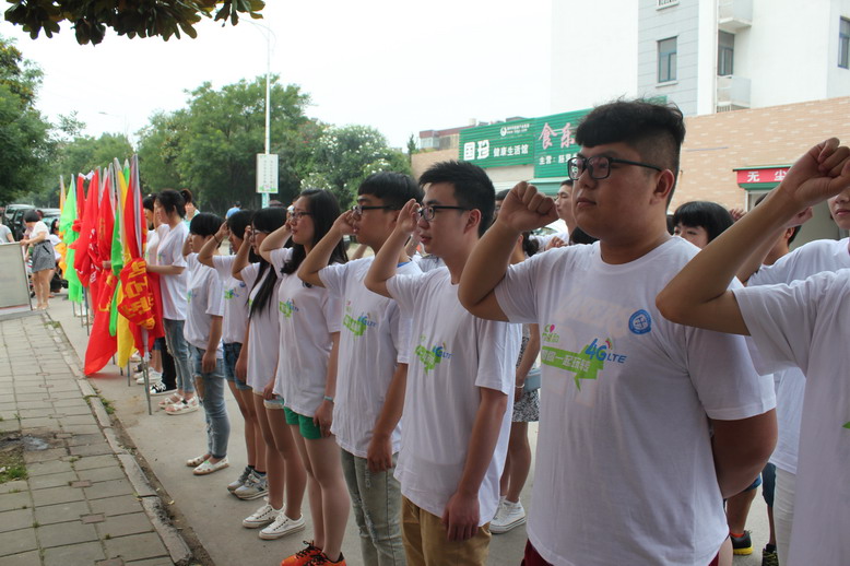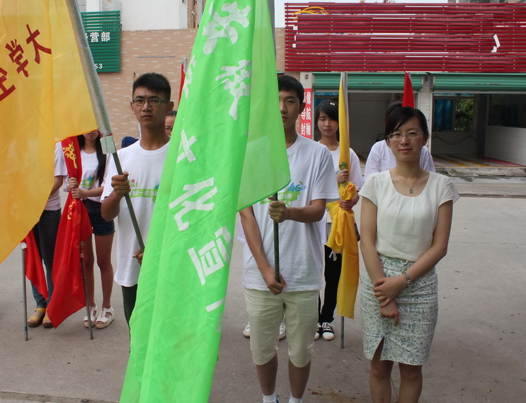 肖婷对学院今年暑期“三下乡”社会实践的总体情况和团队分布情况进行了简要介绍。参加仪式的全体志愿者在优秀学生代表的带领下重温了志愿者誓词,表达了将牢记老师们的嘱托,以饱满的精神和昂扬的斗志投入到社会实践中去的决心。程秀霞、张学森分别为暑期社会实践各重点团队授旗。