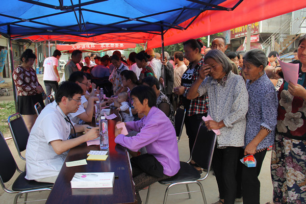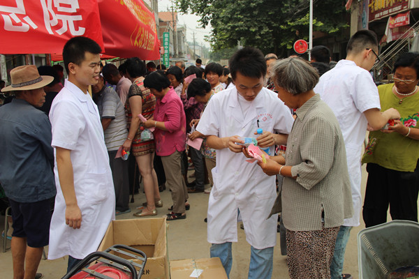 上午9:30,在滑集镇镇政府和镇卫生院的大力支持下,活动拉开序幕。当地村民纷纷慕名而来,将临时搭建的义诊义检室围得水泄不通。专家们就当地居民的各种疾病作出了详细的病情描述与通俗的讲解,使居民们对自己的身体状况与自身疾患有了一个全新的认识,以便实施有病早知早治早防的措施。服务团的志愿者们分工明确,各司其职,有的给现场群众赠送健康宣传资料,有的忙着引导村民们做各项体格检查,还有的协助发放免费家庭常用药品,向他们讲解常见疾病的预防知识。