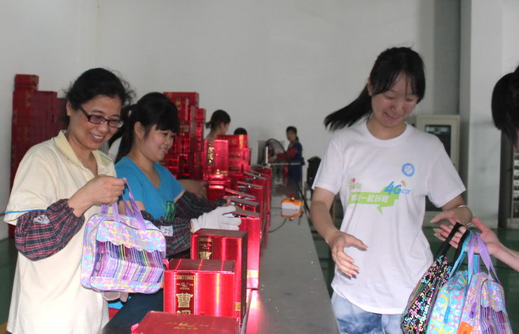 安特公司目前共聘用周边农村一百余名“留守妇女”从事包装等工作。实践团成员在企业负责人的带领下来到公司的生产车间,为坚守在工作岗位上的她们送去花露水、香皂、毛巾等夏季清凉消暑用品。