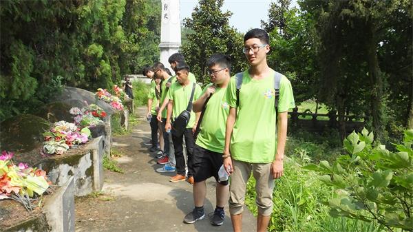 13日下午,服务团一行来到宿松县烈士陵园,缅怀革命先烈。在陈列馆,同学们详细了解了宿松县的抗战历史。宿松是个光荣的革命老区,从五四运动到新中国成立,一批批共产党人、革命志士在宿松这块红色的土地上前仆后继,英勇奋斗。同学们在高耸的革命烈士纪念碑前,为革命先烈鞠躬致敬。