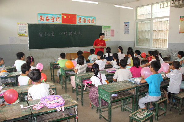 针对留守儿童缺少家庭情感关爱的实情,服务团指导老师、我校心理健康教育中心国家三级心理咨询师高志奎为留守娃们上了一节特殊的心理健康教育课,通过谈心、共同游戏等方式,对留守儿童进行心理辅导,让孩子们懂得互助互爱、珍爱生命、常怀感恩之情。
