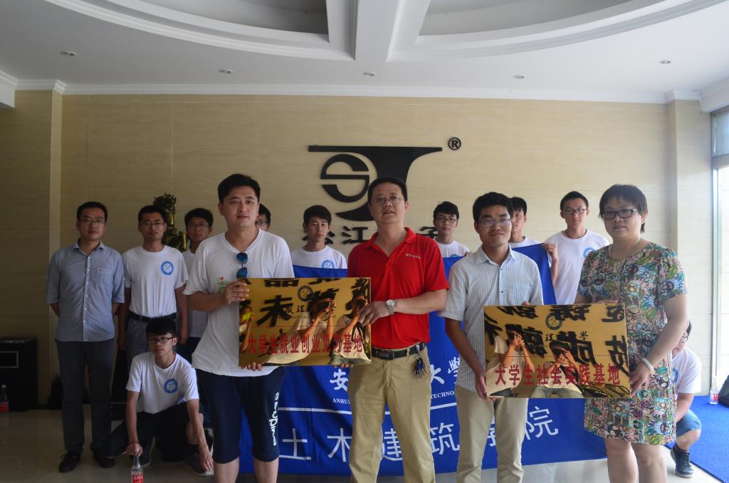7月15日上午,土木建筑学院大学生创业基地和社会实践基地挂牌仪式在淮南松江电子有限责任公司举行。土木建筑学院团委副书记黄广顺和松江电子有限公司董事长吴李为就业创业见习基地揭牌。
