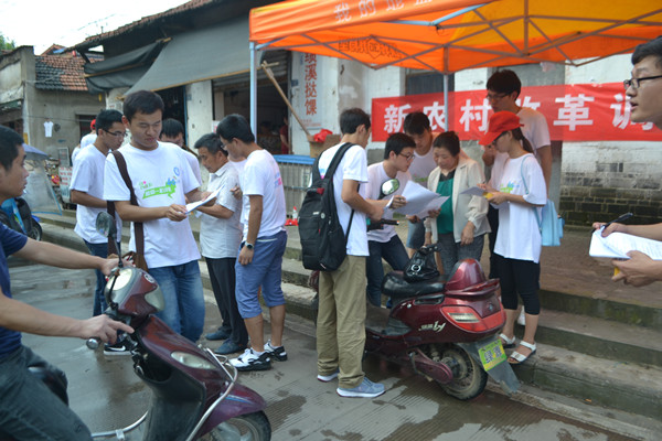 7月17日,学院组建的新农村改革调研团来到泾川镇围绕保障和改善民生、新型城镇化建设、建设美丽中国等方面展开宣传调研。队员们来到田间地头与百姓交流,调研当前农业科技在三农领域的应用;来到青弋江水源地与当地群众了解当地政府对饮用水水源地的保护措施;实践团队向百姓发放问卷,针对涉农信息的及时有效获取与处理、农业基础网络建设等开展调研;来到了当地通信公司了解农村信息服务综合平台建设与使用情况;在当地的医院、诊所,同学们与医务人员针对新农合政策的落实、重特大病的治疗保障等进行交流调研。