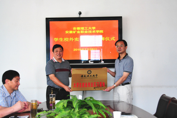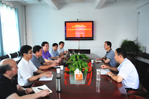 7月28日,安徽理工大学大学生社会实践基地和大学生就业创业基地揭牌仪式,在安徽矿业职业技术学院行政楼会议室举行。能源与安全学院党委书记欧阳连勤、院长石必明分别和安徽矿业职业技术学院党委书记卜晓忠、副院长刘磊为两个基地揭牌,双方并就学生实习实训的相关事宜作了进一步的交流。