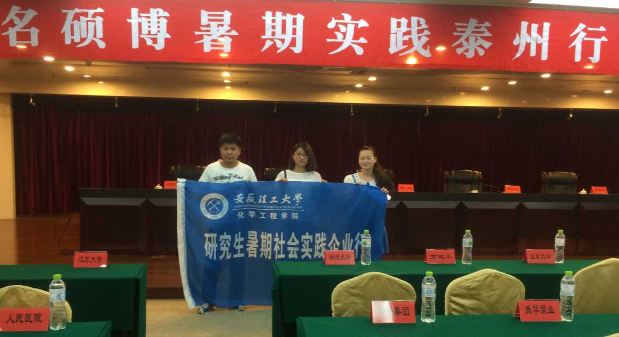 7月15至8月25日,化学工程学院研究生暑期社会实践团参加了泰州市人力资源和社会保障局举办的2015年“百名硕博暑期实践泰州行”活动。在为期40天实践中,全体团员展现了较高的专业素养和高度的责任感,受到活动主办方和实践单位的高度认可。