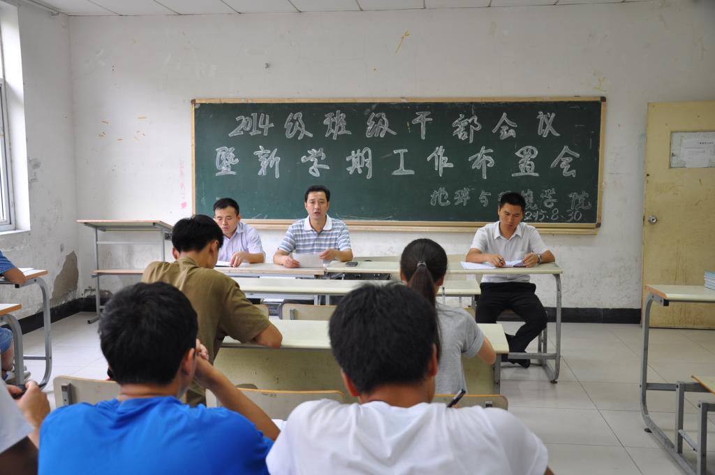 8月30日下午,地球与环境学院分别在学院报告厅、北校区红楼308教室召开学生干部大会部署新学期学生工作。学院党委副书记侯辉,各年级辅导员以及学生干部参加会议。
