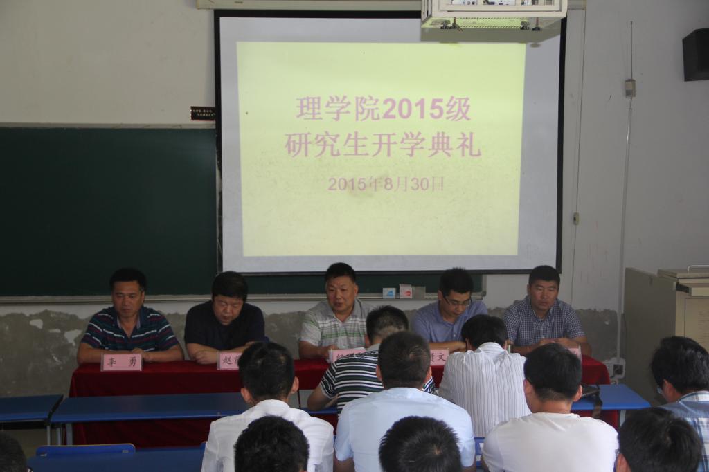 8月30日,理学院研究生入学典礼在院理教一隆重举行。学院党政领导,全体硕士生导师和2015级新生共同参加了典礼,典礼由理学院副院长方贤文主持。