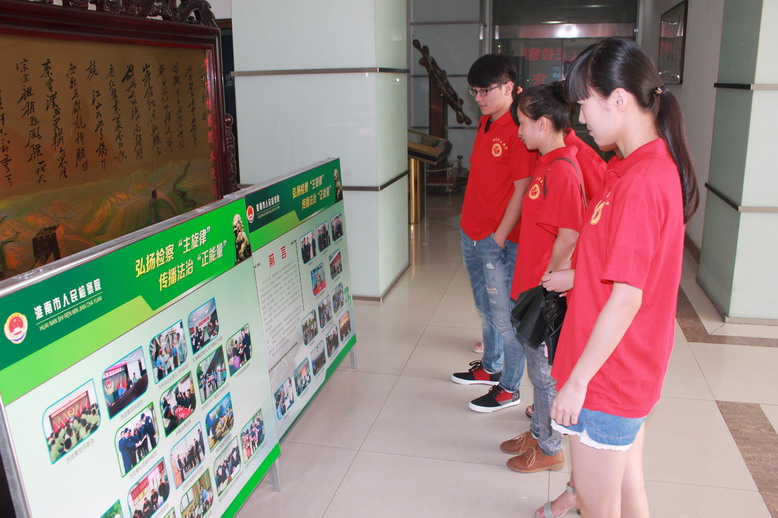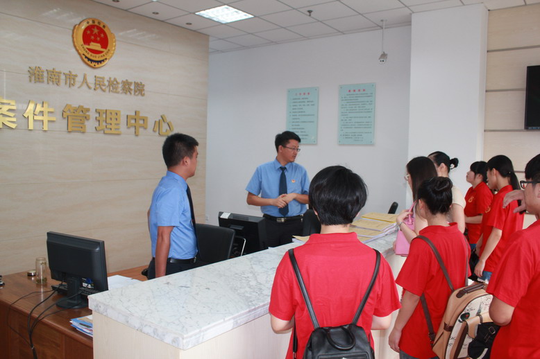 为进一步增强学生法治意识,提高学生法律素养,8月31日下午,外国语学院党委副书记程秀霞、团委书记张学森带领6名学生骨干来到淮南市检察院开展学习参观活动。