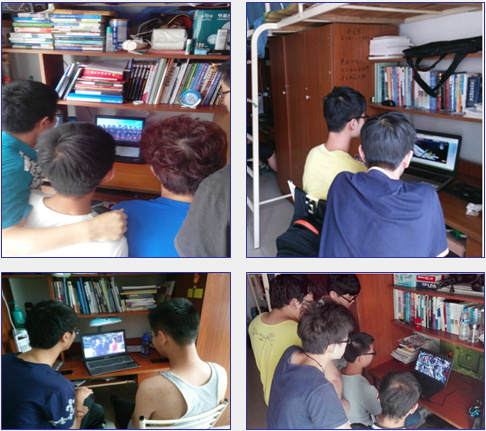 学生宿舍集体观看阅兵式直播(摄影:刘勇)