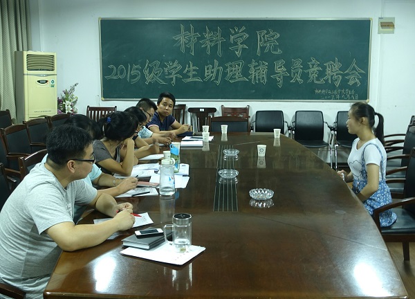 9月8日晚,材料科学与工程学院在本部学院403和425会议室举行2015级学生辅导员助理竞聘会。院党委副书记范洪喜,各年级辅导员及2015级新生班主任作为评委参与面试选拔工作。全院共44名优秀学生报名参加了竞聘。