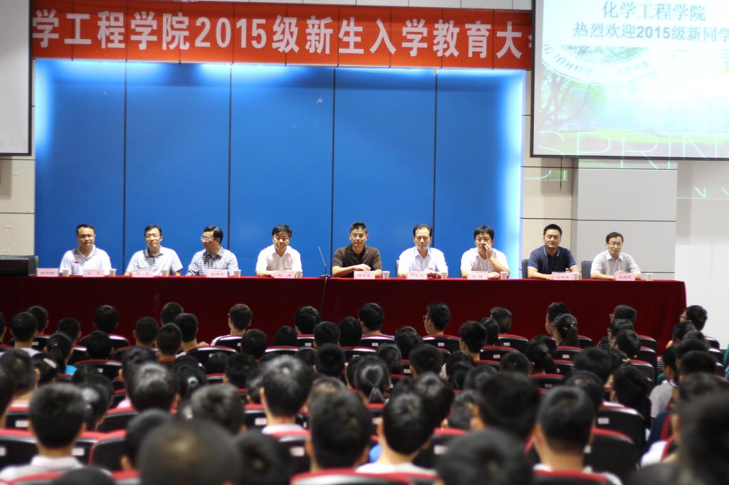 9月13日晚,化学工程学院师生在北校区图书馆多功能厅隆重召开新生入学典礼暨入学教育大会。学院党政班子、各系负责人、新生辅导员及2015级全体新同学参加大会。大会由学院党委副书记徐泽绵主持。