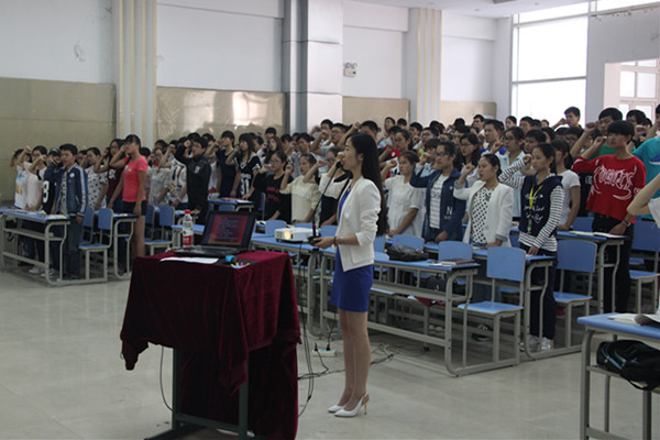 “健康所系,性命相托……,我志愿献身医学,热爱祖国,忠于人民……,为祖国医药卫生事业的发展和人类身心健康奋斗终生。”在新生辅导员柏丹丹带领下全体医学新生庄严宣誓,拉开了医学院新生入学教育的序幕。震撼有力的誓词感染着全场同学,从此医学院学子多了一份责任与担当。