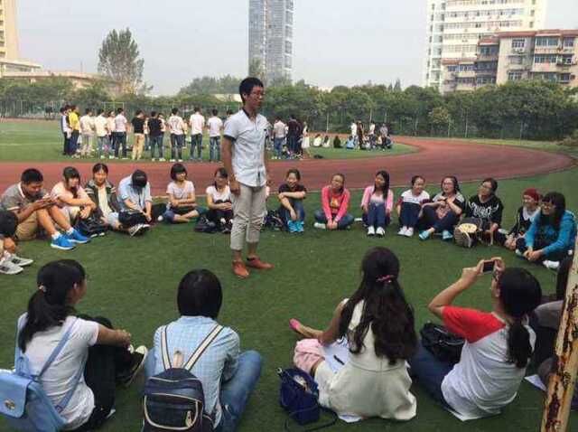 英语1班和日语班的新生来到学校附近的老龙眼水库,两个班的学生坐在一起,一边看水库清幽的风景,一边闲聊说说心里话。英语2班在西区操场开展了文艺联欢活动,新生真是多艺多才,唱歌舞蹈一个也不少。英语4班的同学则在张燕老师的带领下,做起了老鹰捉小鸡、两人三足接力赛等经典游戏,渐渐地一些内向害羞的女生也放开投入到游戏中,大家少了初来时的拘泥,欢乐的笑声洒满整个操场。