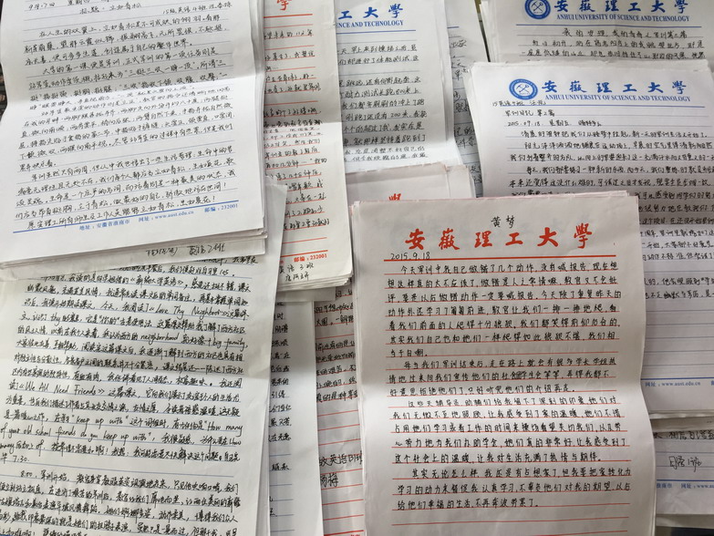 从军训第一天起,学院就要求新生每天写军训日志,记录下这一天发生的事情以及自己的感悟。五天来,740篇军训日记记录着新生军训的点点滴滴。日语班朱志梅同学在军训日记里写道:“在声声口令中成长,懂得了纪律,懂得了团队意识。军训这个大学第一课,相信自己受益匪浅。”英语1班的刘紫薇写道:“在军训中我深深感受到了部队纪律的严肃感和庄严感,我们做事也要凡事认真对待,才能做好每一件事。”新生张亚觉得,军训让她感觉到新集体的温暖和归属感,驱散了想家的情绪,很快融入到外国语学院的大家庭中。现在,写军训日记成了一种习惯,同学们每天军训完,都会利用晚自习时间或睡前时间来写一篇军训日志,有的同学写下军训的酸甜苦辣,有的同学记录训练后的所思所想,有的赞扬军人的辛苦与伟大,有的自己给自己打气加油。