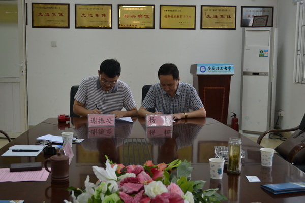 座谈会上,谢振安代表学校就业处与杨桓签订了高校毕业生就业合作协议书。