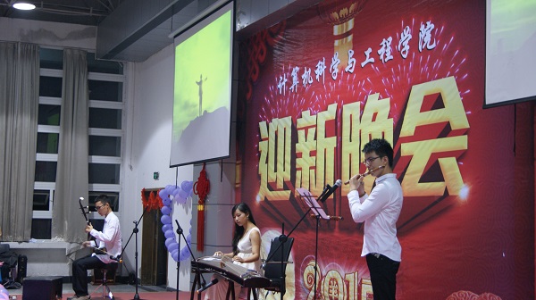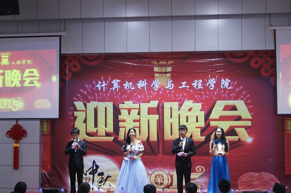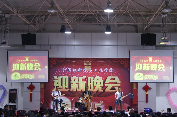 为迎接2015级新生的到来,送去对军训官兵节日的祝福和温暖,9月26日晚,计算机科学与工程学院在北校区图书馆二楼报告厅举行2015年迎新暨中秋慰问演出。学院全体党政领导出席晚会。院全体辅导员、班主任及2015级全体新生参加了此次晚会。