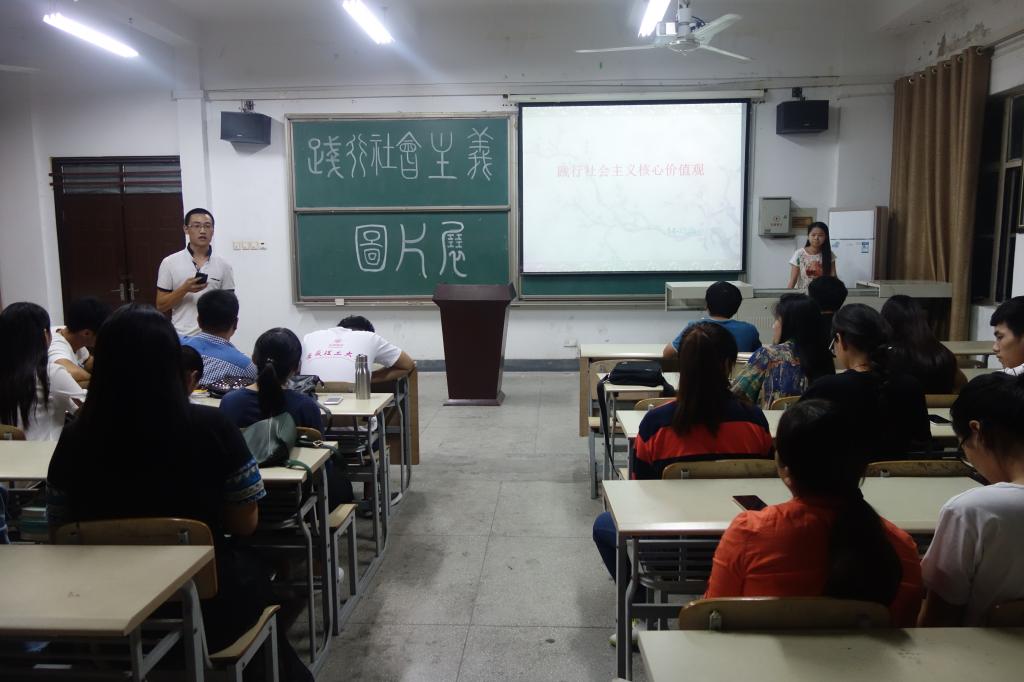 9月22日下午,社会工作2014级1班、政治学与行政学2014级1班团支部联合举行了践行社会主义核心价值观知识竞赛,检验了同学们学习社会主义核心价值观的成果。
