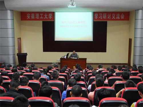 10月9日晚,电气与信息工程学院在校本部六角楼报告厅举行2016届毕业生就业动员会。学院党委副书记徐关怀作就业动员报告。毕业班辅导员及全体应届毕业生出席动员会。