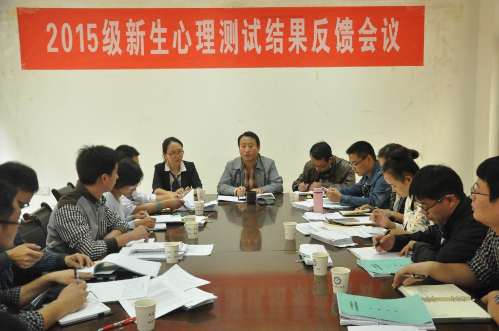 10月15日下午,2015级新生心理健康普查结果反馈会议在大学生素质教育中心会议室召开。会议由学生处副处长涂有胜主持。各学院新生辅导员参加了会议。