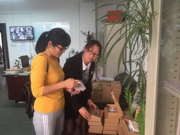 教职工领取防雾霾口罩(摄影:李玲)