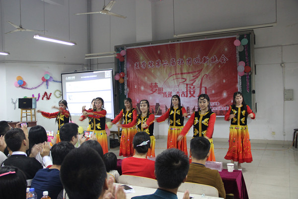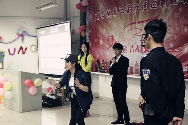 为迎接2015级新生的到来,展现医学学子的风采,10月18日晚,医学院第二届社团迎新晚会在医教403举行。医学院团委副书记魏元一,辅导员金韬、柏丹丹,部分2015级班主任和全体新生观看了演出。