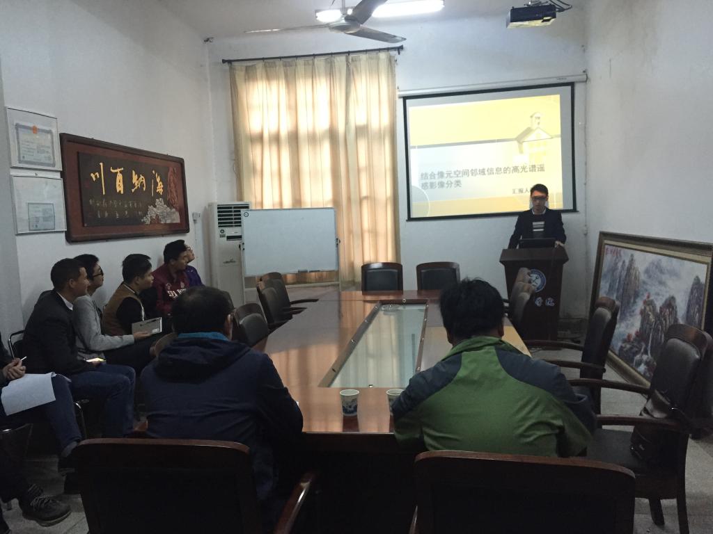 11月4日上午,测绘学院在院一楼会议室举行研究生学术报告会,2013级19名研究生作了学术报告。报告会特邀王磊、陈志刚老师出席并对同学们的报告进行点评。