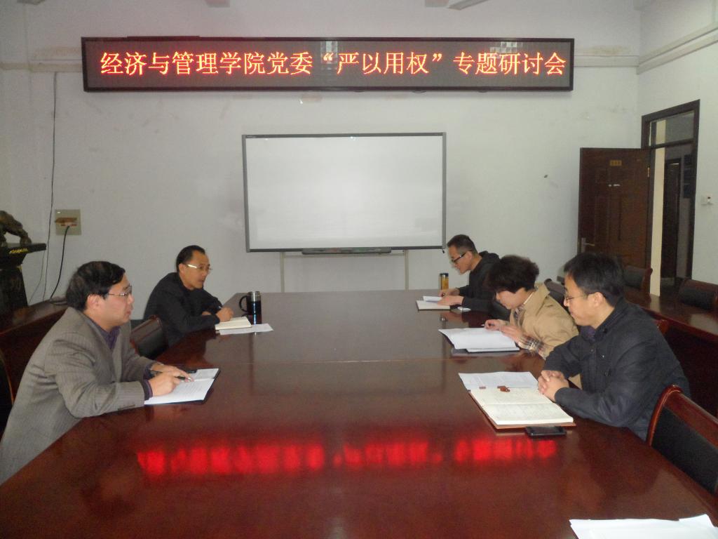 11月10日下午,经济与管理学院党委举行“严以用权”专题研讨会。会议由院党委书记李梁主持,院领导班子成员参加了研讨会。