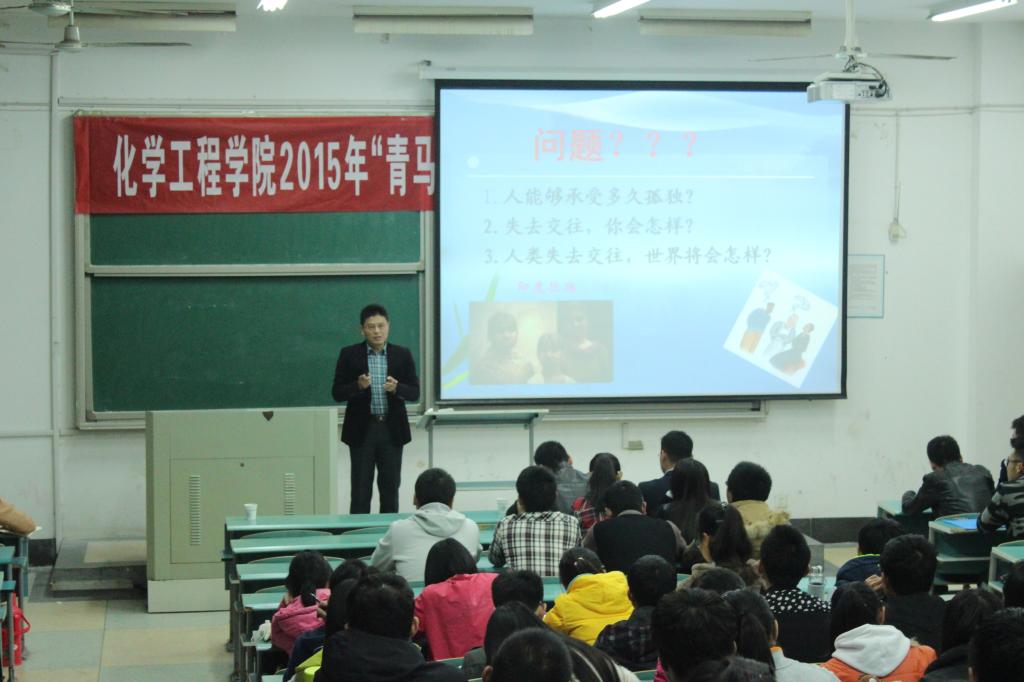 11月16日晚,化学工程学院2015年“青马工程”暨大学生骨干培训班开班仪式在北实402教室隆重举行,学院党委书记徐冬生出席仪式。院团委副书记杨志华主持仪式,2015级辅导员周昌贵和全体“青马”学员参加了开班仪式。