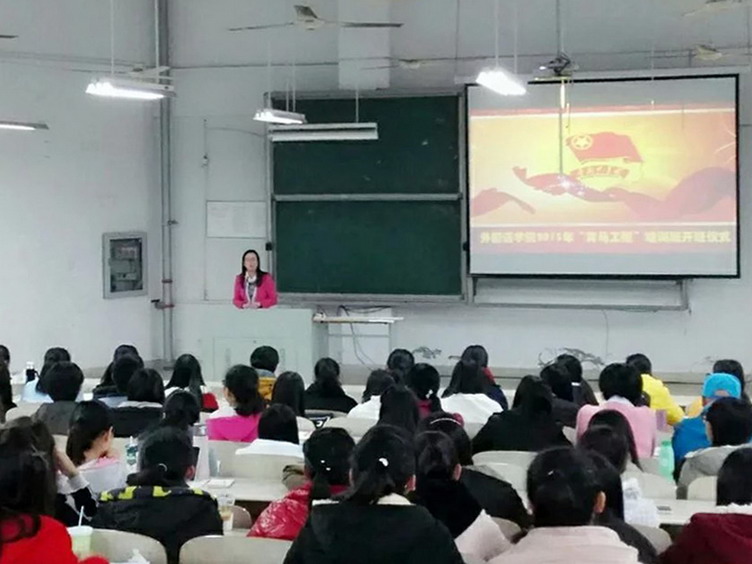 11月21日上午,外国语学院在医教303教室举行2015年“青马工程”培训班开班仪式。学院党委副书记程秀霞、团委书记张学森和团委副书记肖婷参加开班仪式。