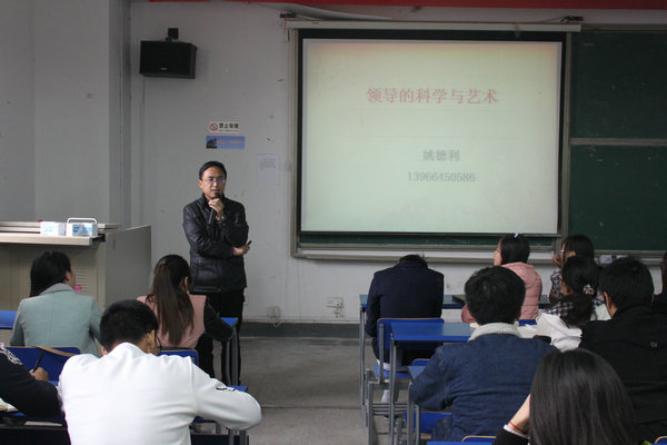 姚德利通过一个令人感动的故事,使同学们深刻认识到学好专业课程的重要性,同时指出在大学学习中要主动通过图书馆、网络等多种平台提高自身综合素质,并着重提高自身的领导基本素质与领导能力。