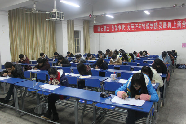 为了检验2015级学生的学习效果,让他们对大学的学习有更加全面深入的认识,经济与管理学院于11月24日晚6:20在经管楼进行2015级学生期中考试。辅导员李双双与各班辅导员助理对此次考试进行监考。