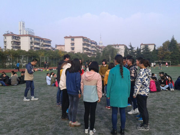 高志奎带领全体学员在西校区操场进行了“我学你做”、“团体建设”、“心有千千结”、“信任之旅”、“火车快开”、“荆棘排雷”等素质拓展活动,寓教于乐,让学员们明白与人沟通、信任、合作的重要性,也感受到了交流、互助带给自己的快乐。