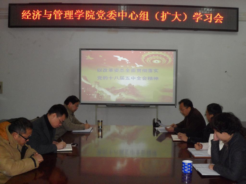 12月3日上午,经管学院党委中心组(扩大)会议在院三楼会议室举行,集中学习十八届五中全会精神。院党委书记李梁主持会议,院党委委员、党支部委员、辅导员参加了此次集中学习。