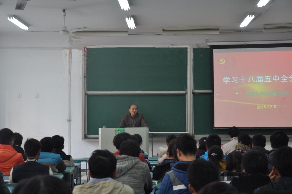 12月6日下午,地球与环境学院在北实203教室举办学习十八届五中全会精神辅导报告会。学院党委书记盛鹏飞为学院130余名学生干部作了题为《认真学习和把握十八届五中全会精神》的专题报告。