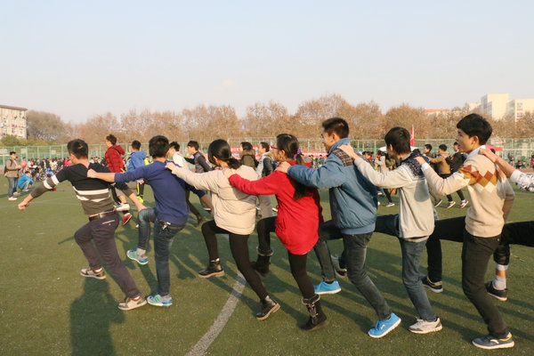 12月6日下午,全体学员在北校区足球场开展了“小火车”、“十人九足”和“背夹球”等素质拓展活动。
